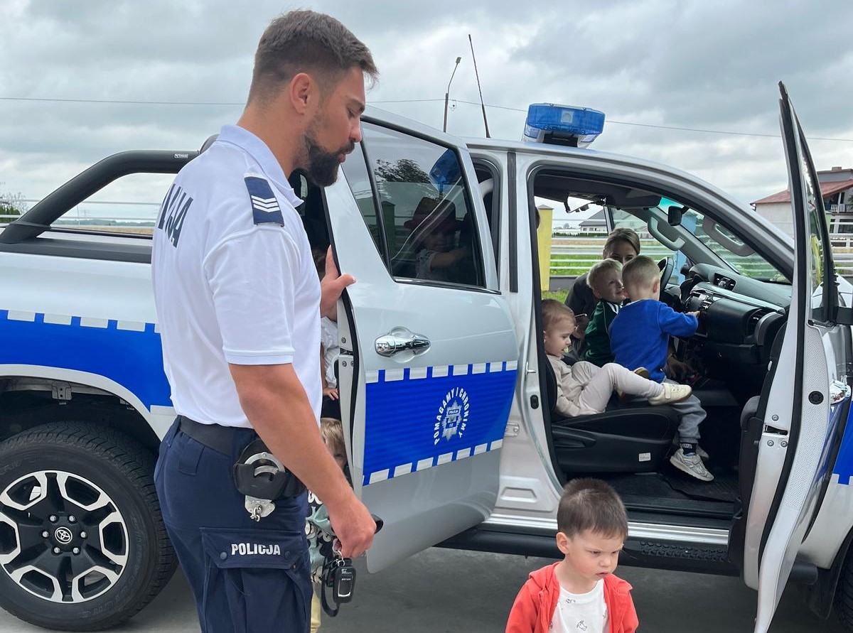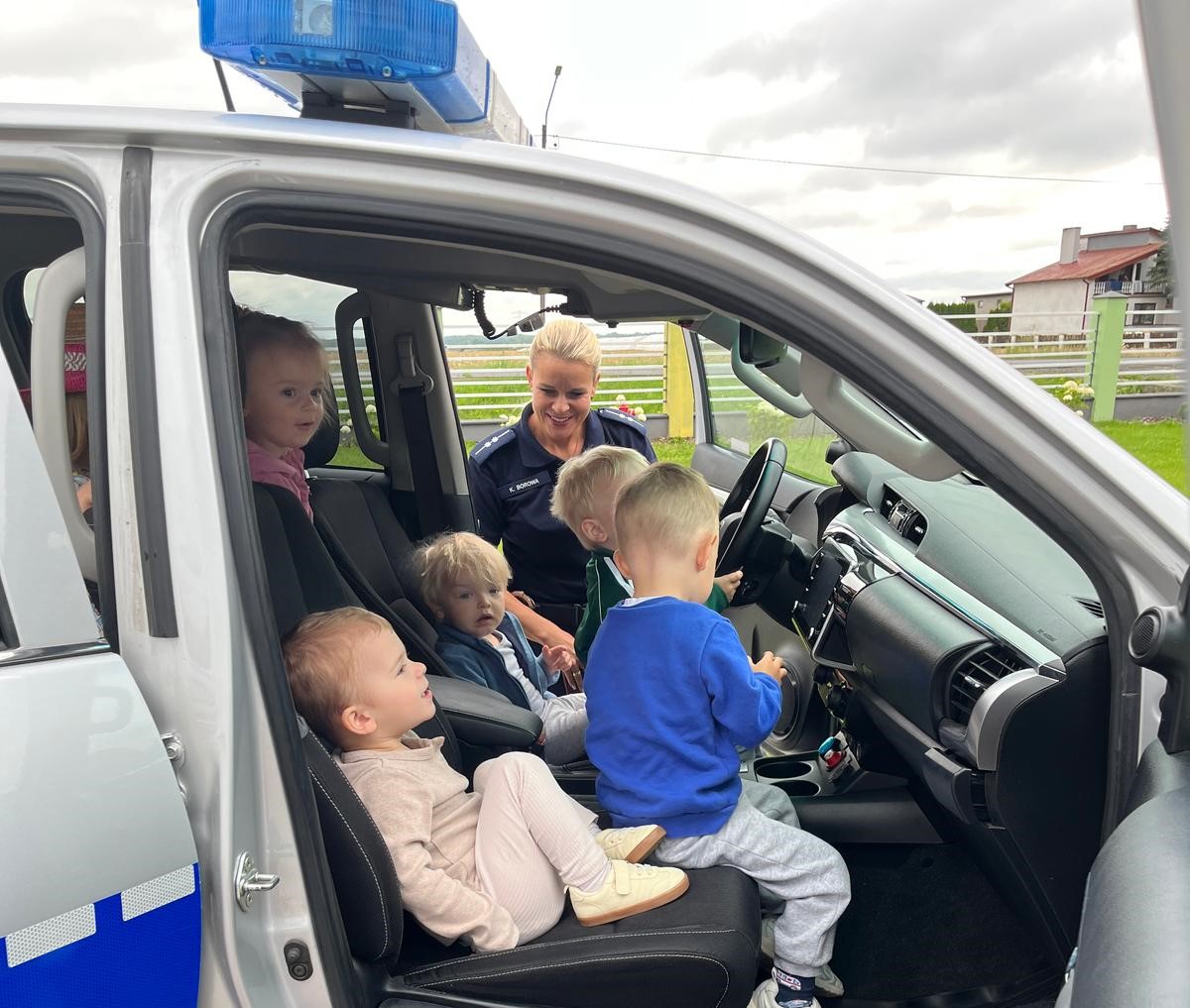Policjanci spotkali się z dziećmi ze żłobka „WESOŁY MALUSZEK” w Szpetalu Górnym. Mundurowi pokazali dzieciom wyposażenie policjanta oraz policyjny radiowóz.