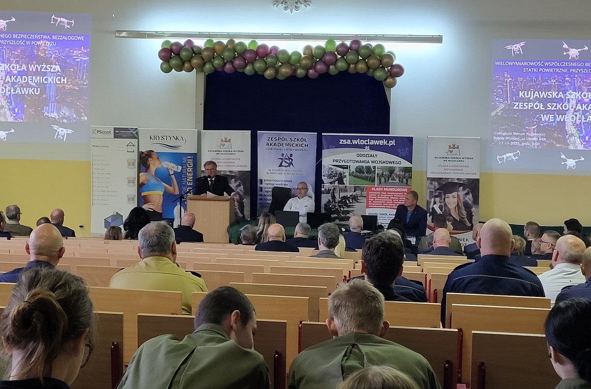 Konferencja na temat wielowymiarowości współczesnego bezpieczeństwa, bezzałogowych statków powietrznych jako przyszłość w powietrzu dotyczyła bezpieczeństwa w mieście i powiecie włocławskim. Policjanci stawili się w Kujawskiej Szkole Wyższej we Włocławku na zaproszenie organizatorów.