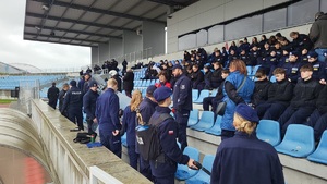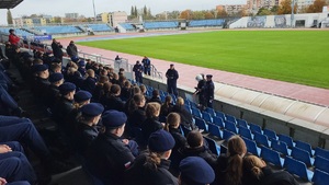 Szkolenie policjantów na stadionie z udziałem klas mundurowych -