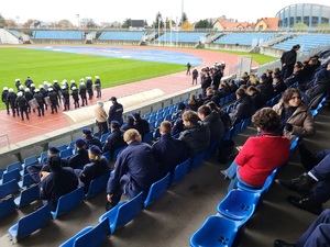 Wczoraj (28.10.2025) na kilka godzin teren włocławskiego stadionu był miejscem szkolenia policjantów Nieetatowego Pododdziału Policji, któremu przyglądali się uczniowie klas mundurowych. Blisko 100 funkcjonariuszy z komendy włocławskiej i ościennych- z Aleksandrowa Kujawskiego, Lipna, Radziejowa, Inowrocławia w ramach doskonalenia swoich umiejętności i taktyki ćwiczyło działania pododdziału zwartego w czasie imprez masowych. Zdobyta wiedza pozwala w czasie organizowanych na stadionie imprez sportowych szybko reagować i eliminować zagrożenia związanie z zakłócaniem ładu i porządku publicznego.
