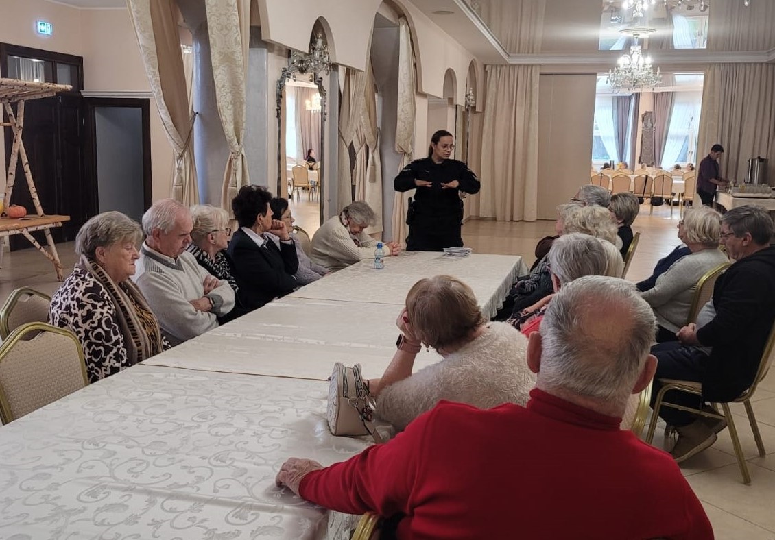 Mundurowi zwrócili uwagę na zamontowanie solidnych zamków w drzwiach, czy wyposażenie w wizjer lub kamerę, omówili jak działają oszuści, którzy bardzo często podszywają się pod wnuczka, czy policjanta. Wymyślają wówczas wypadek czy ciężką chorobę, prosząc o wsparcie finansowe.