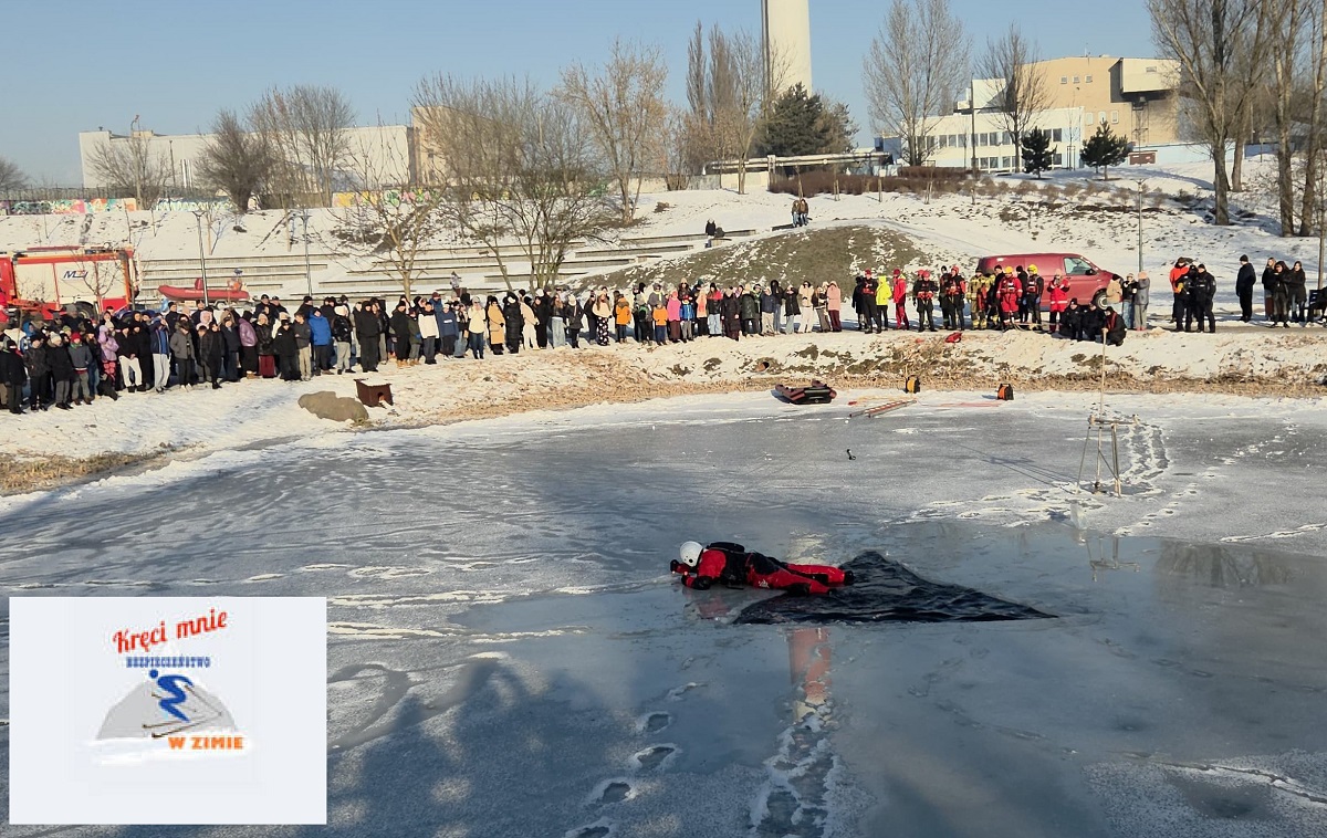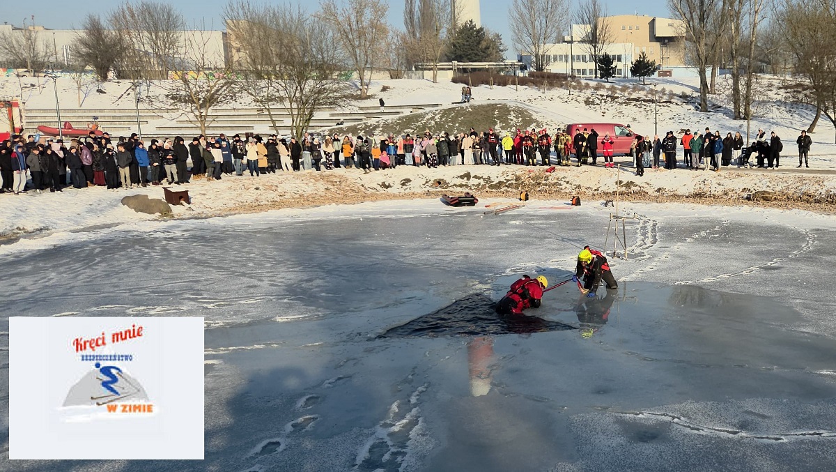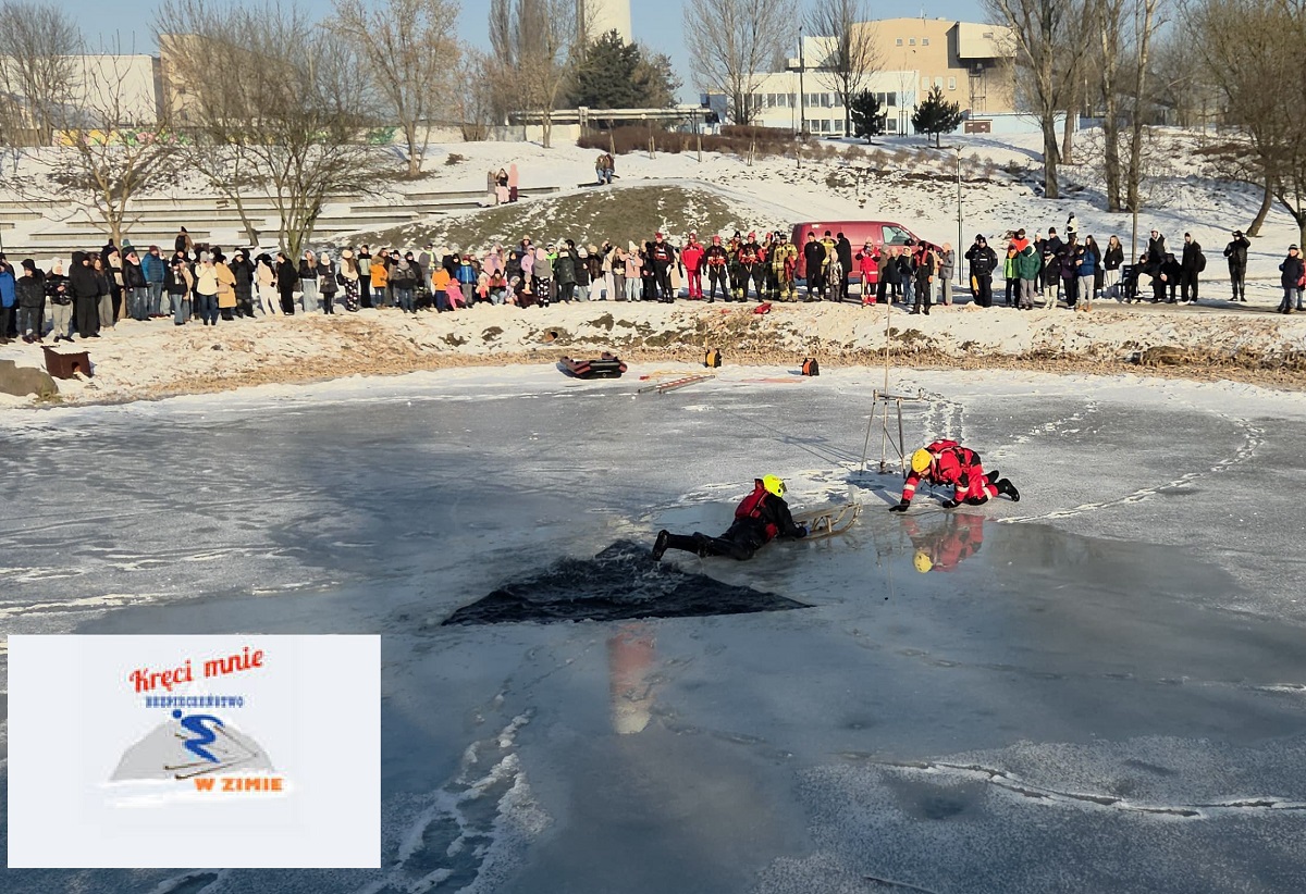 Aby te dwa tygodnie przerwy od nauki były nie tylko miłe ale i bezpiecznie, dzieci zapoznały się wczoraj (21.01.2026) z potencjalnymi zagrożeniami i zasadami bezpieczeństwa. Okazją ku temu były pokazy ratownictwa na lodzie zorganizowane wspólnie przez włocławskich policjantów, ratowników WOPR-u i strażaków. Odbyły się one w Parku na Słodowie, gdzie służby, w tym policyjni „wodniacy” prezentowali co zrobić w przypadku załamania się lodu. Mundurowi pokazali i omówili sposób bezpiecznego poruszania się po lodzie i udzielania pomocy osobie, która wpadła do przerębla. Bez wahania wskakiwali do lodowatej wody, aby uzmysłowić młodym ludziom grożące niebezpieczeństwo.