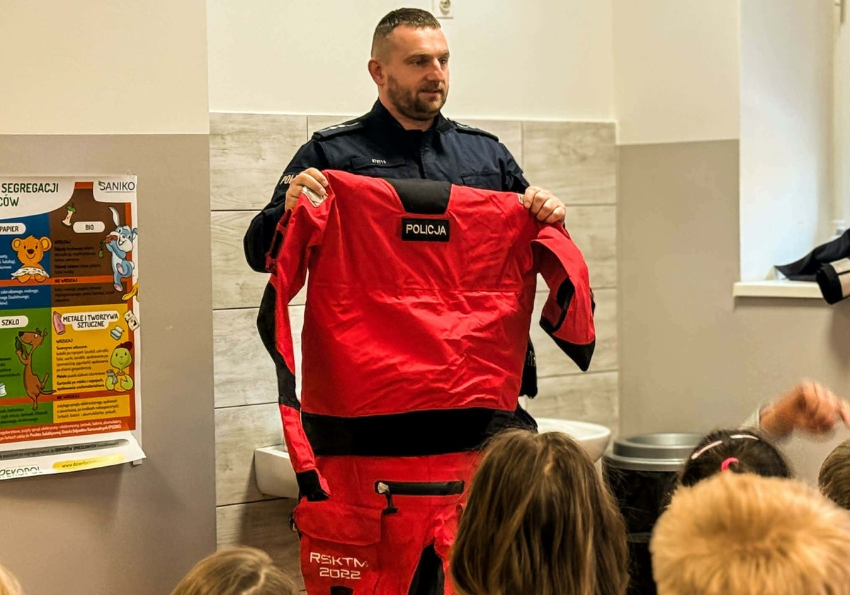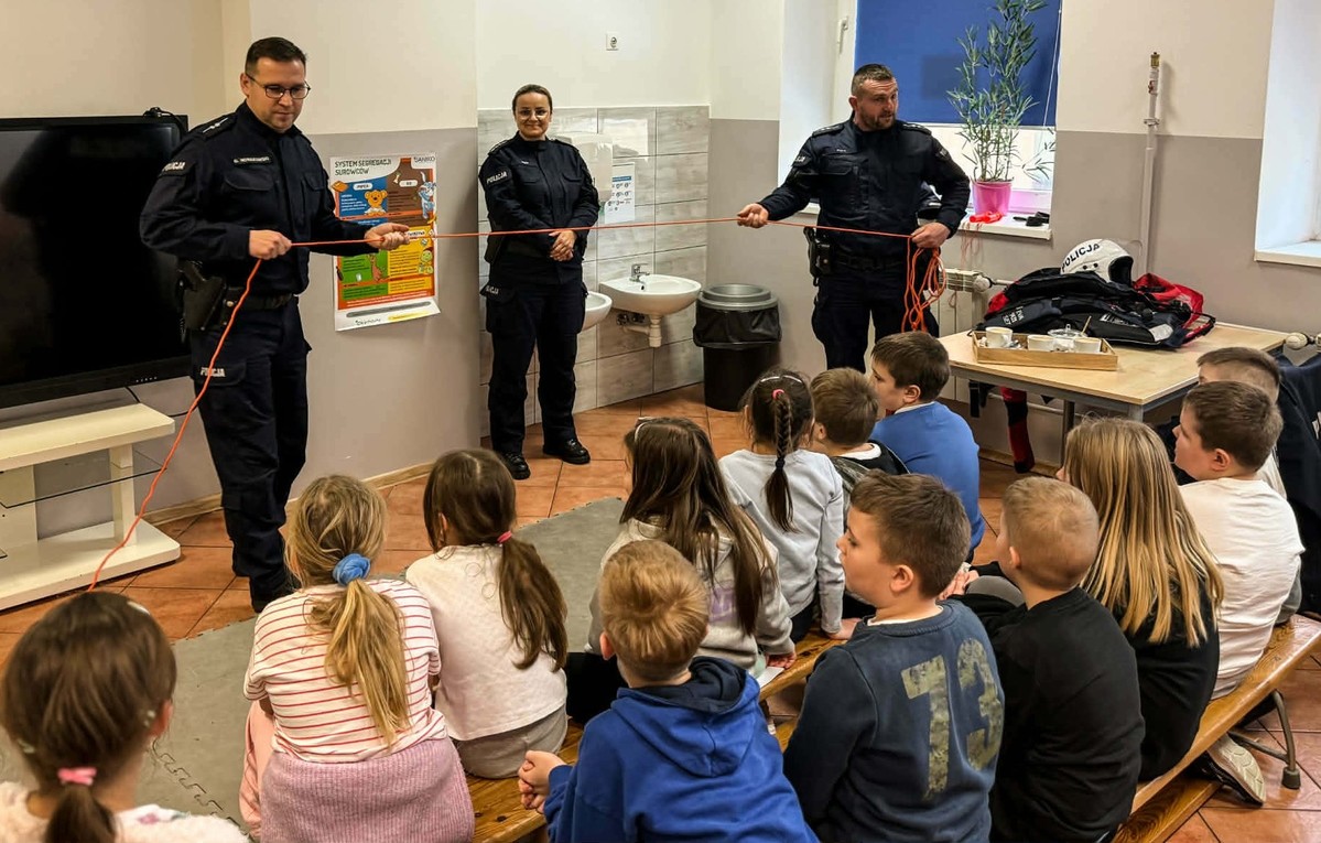Funkcjonariusze omawiali z najmłodszymi w jaki sposób mogą bezpiecznie spędzić ferie zimowe, jak należy unikać niebezpieczeństw w trakcie zabawy oraz jak pomóc rówieśnikom w sytuacjach, gdy potrzebują pomocy, aby samemu nie stać się ofiarom np. niebezpiecznych, zagrażających życiu zabaw na zamarzniętych akwenach.