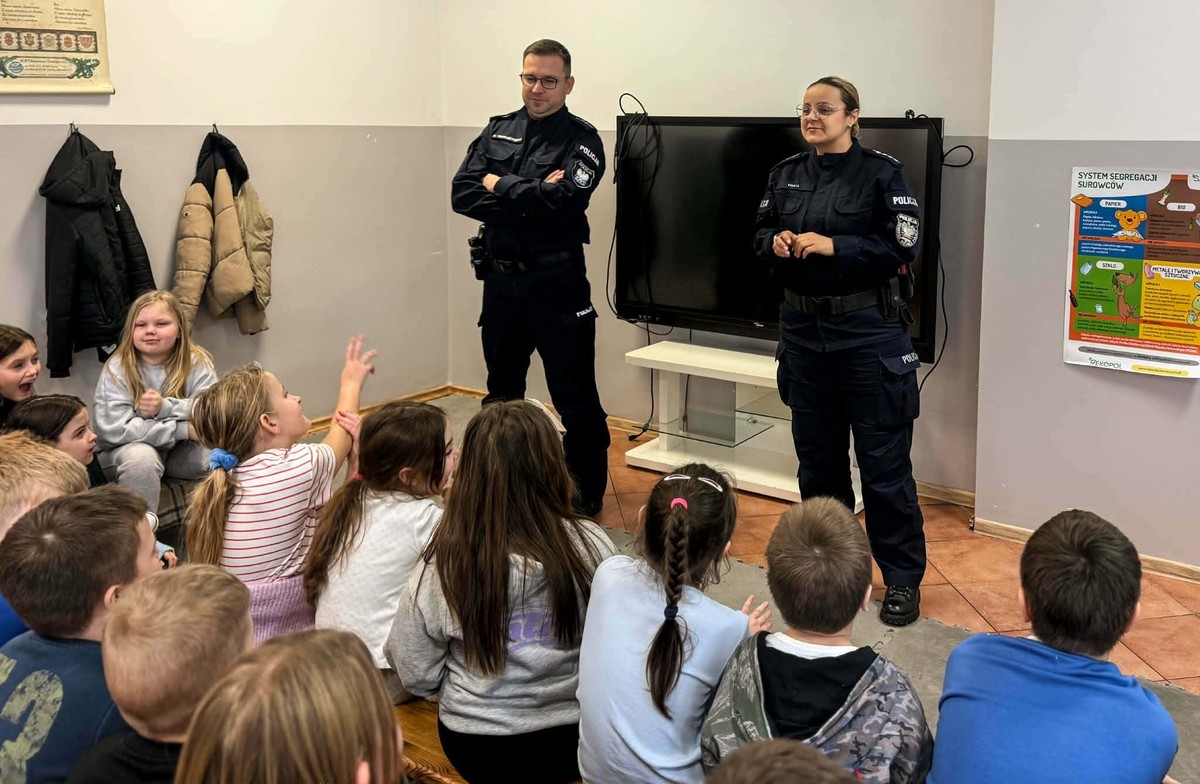 Okres zimowy i rozpoczynające się ferie są idealnym czasem na spotkania edukacyjno – profilaktyczne. Podczas prelekcji policjanci radzą i ostrzegają jak bezpiecznie poruszać się na drodze oraz omawiali zachowanie w trakcie wspólnych zabaw w ramach akcji „Kręci mnie bezpieczeństwo zimą”.
