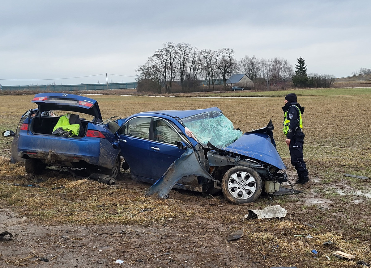 Do obydwu zdarzeń doszło wczoraj (23.02.2026) pierwsze miało miejsce po godzinie 12:20 na drodze gminnej w miejscowości Szewo. Wstępne ustalenia wskazują, że 19-letni kierujący pojazdem honda jadąc od miejscowości Bilno z niewyjaśnionych przyczyn zjechał na prawe pobocze i uderzył w słup energetyczny. W wyniku zdarzenia kierowca pojazdu osobowego poniósł śmierć na miejscu.