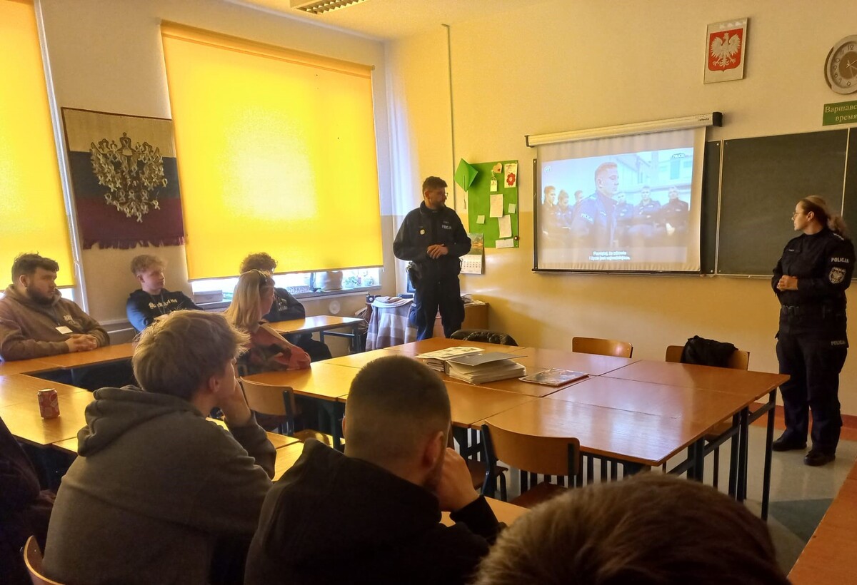 Przedstawiciele włocławskiej Policji spotykają się z młodzieżą kończącą szkoły ponadpodstawowe i rozmawiają z nimi o zawodzie policjanta. Młodzi ludzie dzięki takim spotkaniom i przekazanym kryteriom naboru do służby w Policji mają możliwość podjęcia świadomego wyboru dalszej swojej kariery.